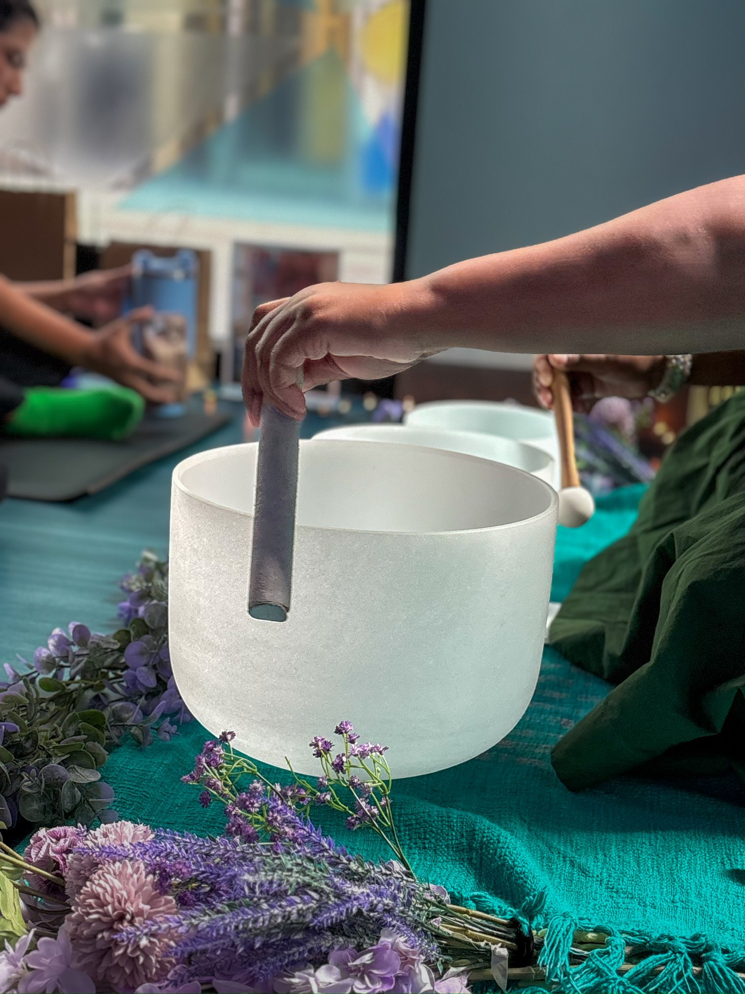 An intimate 30-person guided yoga + meditation + sound bath experience.